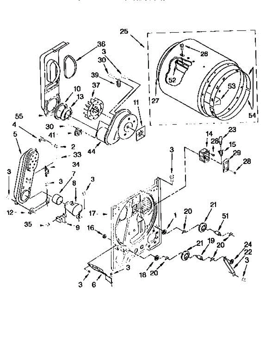 Structural rear panel that forms the back wall of your dryer drum compartment and aids heat retention. Replace if cracked, damaged, or causing noise.