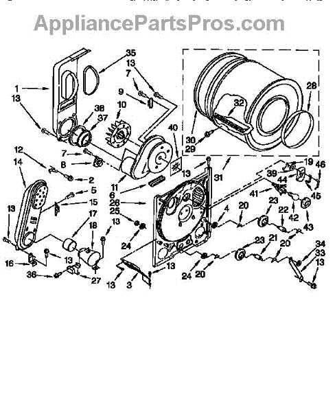 Complete drum assembly for dryers. Houses and rotates laundry during cycles. Replace if cracked, warped, damaged, or worn from extended use.