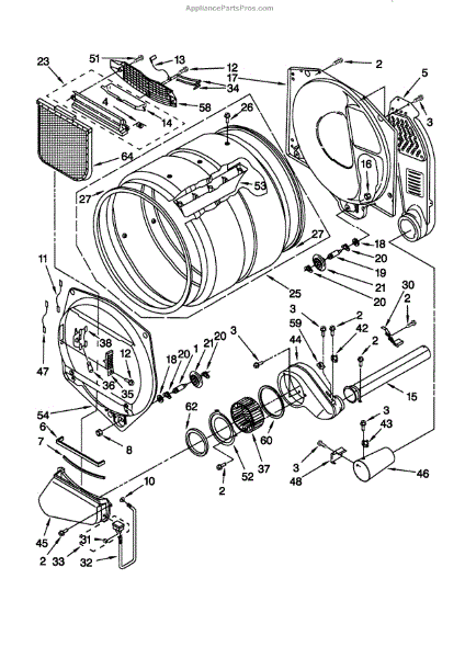 Blower housing assembly that directs airflow from the drum to the exhaust vent. Replace if cracked, damaged, or causing excessive noise in your dryer.