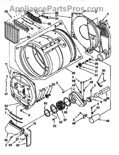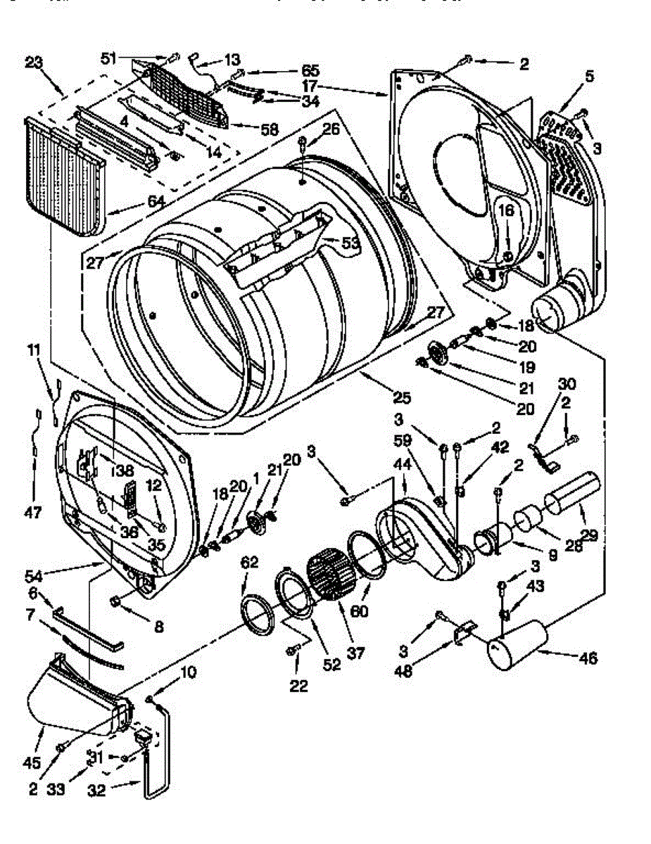 Blower housing assembly that directs airflow from the drum to the exhaust vent. Replace if cracked, damaged, or causing excessive noise in your dryer.