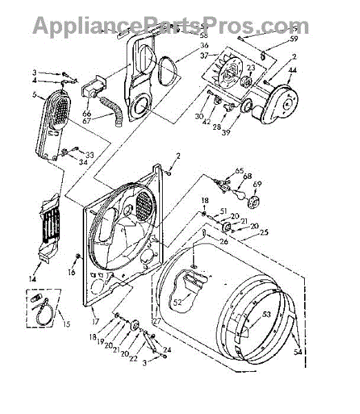 Replaces a cracked, dented, or damaged dryer drum bulkhead. This front drum component restores smooth tumbling action when the original is worn or broken.