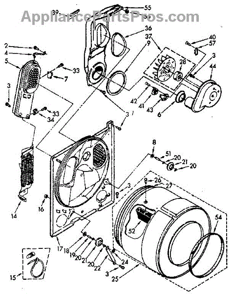 Seals the rear drum opening to prevent air leaks and reduce noise. Replace if worn, frayed, or causing rattling sounds. Confirm fit with your model number.