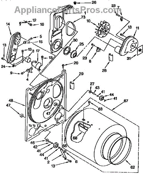 Replacement drum front bulkhead for dryers. Installs at the front of the drum assembly. Needed when original is cracked, damaged, or worn out.