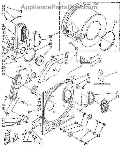 Seals the gap between drum and bulkhead to maintain airflow and quiet operation. Replace when worn to eliminate squealing, reduce lint buildup, and prevent fabric snags. Confirm fit by model number.