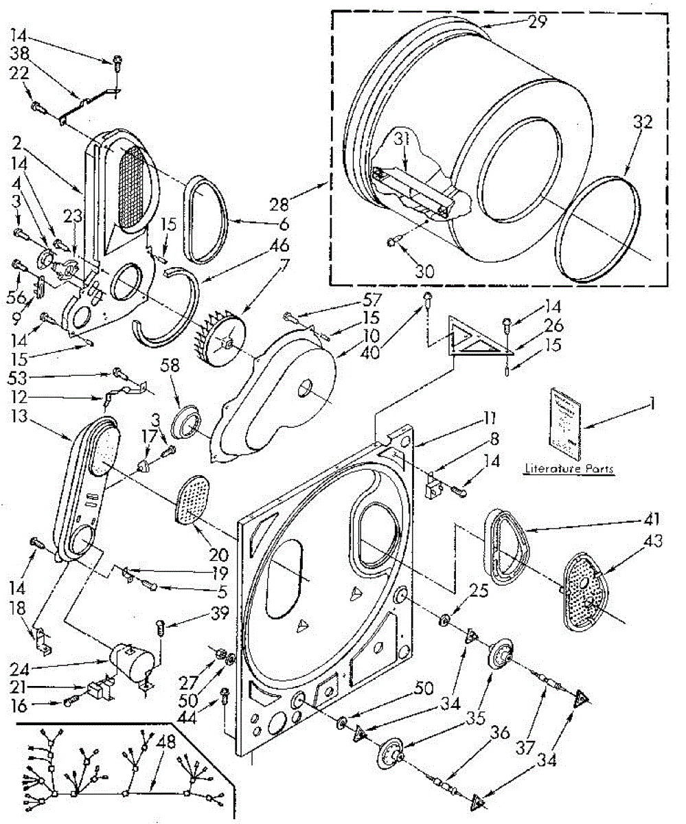 Seals the gap between drum and bulkhead to maintain airflow and quiet operation. Replace when worn to eliminate squealing, reduce lint buildup, and prevent fabric snags. Confirm fit by model number.