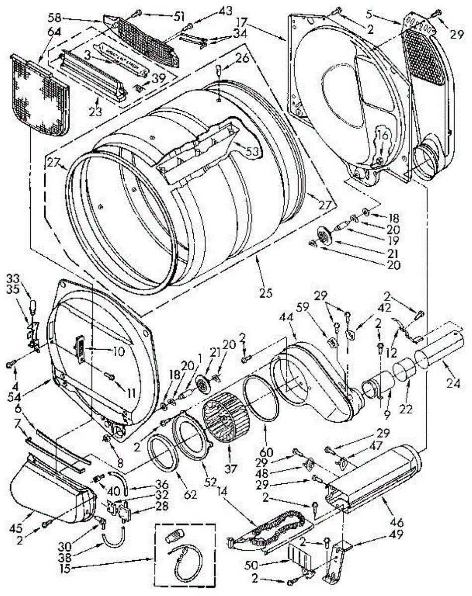 Seals the blower housing to prevent air leaks that reduce drying efficiency. Replace if worn, cracked, or missing to restore optimal airflow.