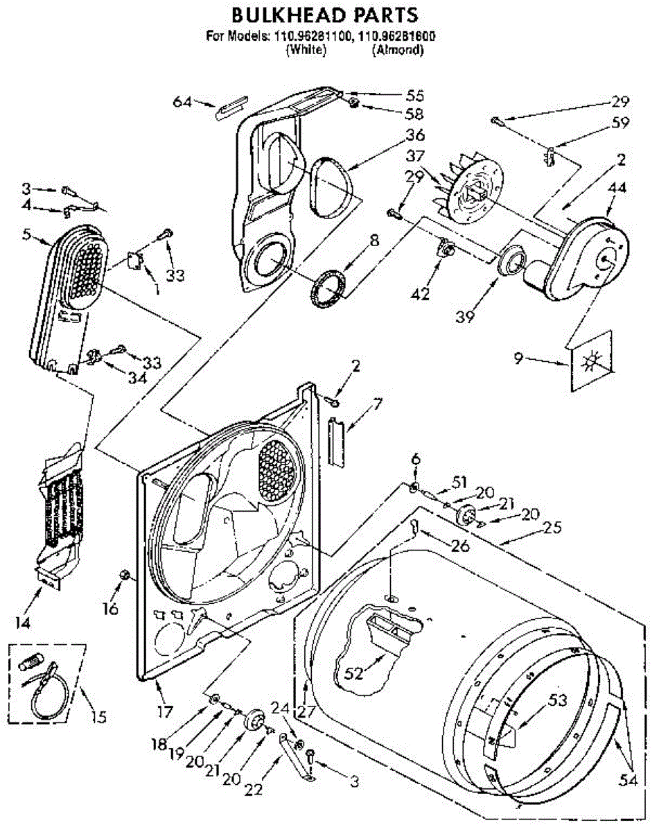 This bulkhead is the front tub housing that supports the washer drum and seals the washer cabinet to help contain water. Replaces a cracked or corroded housing to restore proper drum alignment and help prevent leaks. What it does: