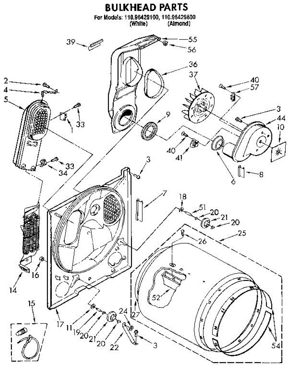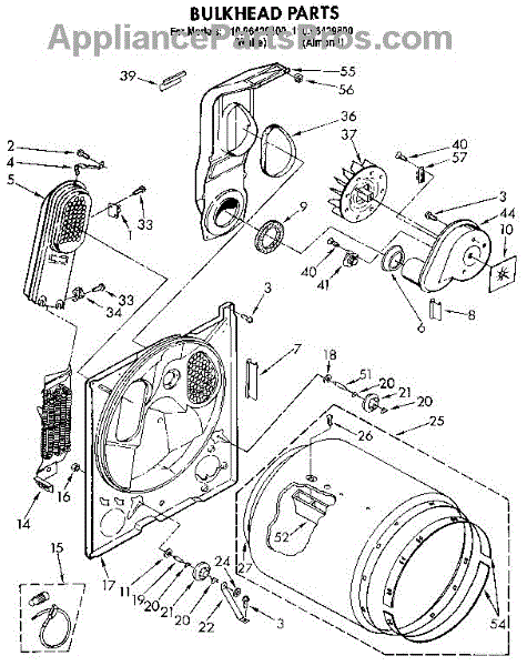 Replacement drum front bulkhead for dryers. Installs at the front of the drum assembly. Needed when original is cracked, damaged, or worn out.