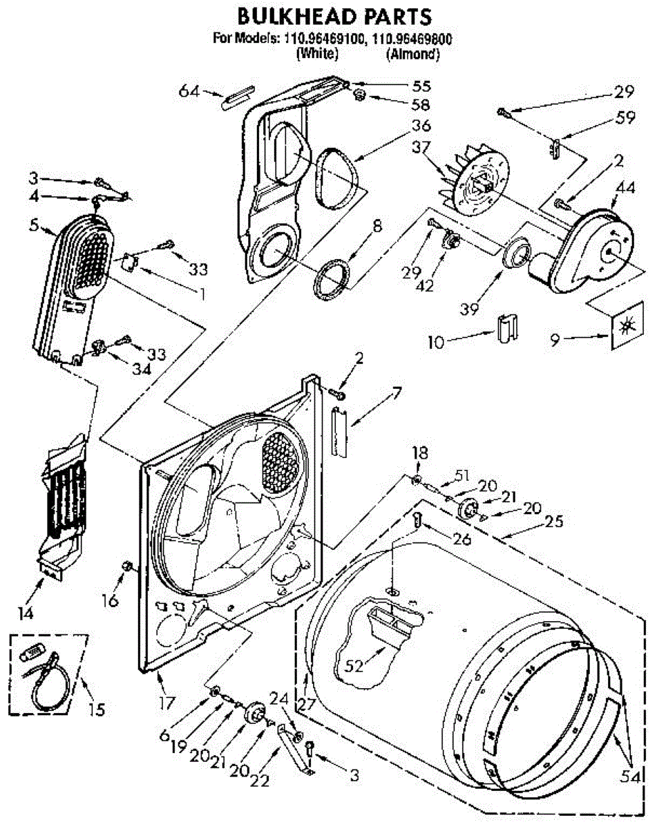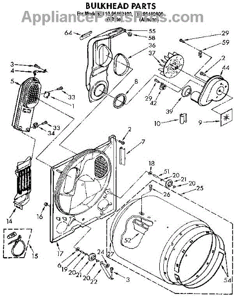 Replacement drum front bulkhead for dryers. Installs at the front of the drum assembly. Needed when original is cracked, damaged, or worn out.
