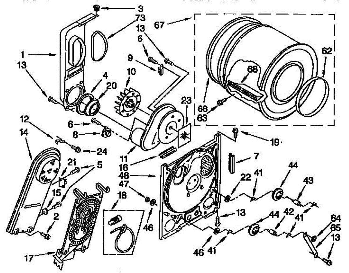 Replacement drum front bulkhead for dryers. Installs at the front of the drum assembly. Needed when original is cracked, damaged, or worn out.
