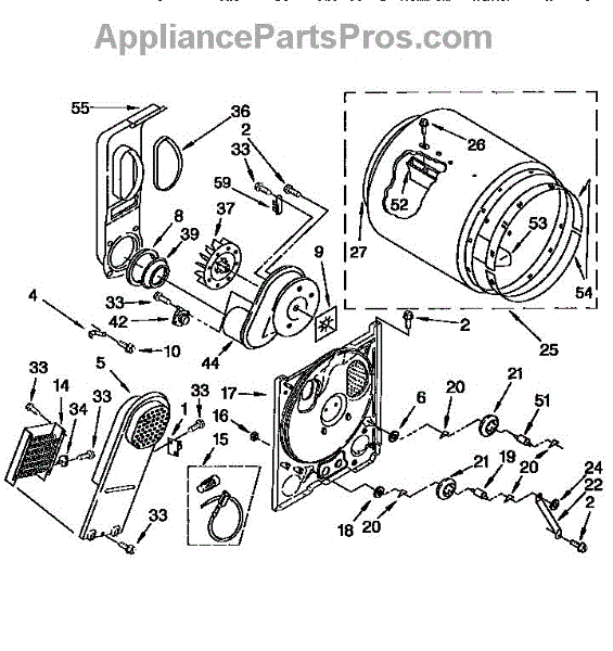 Replaces a cracked, dented, or damaged dryer drum bulkhead. This front drum component restores smooth tumbling action when the original is worn or broken.