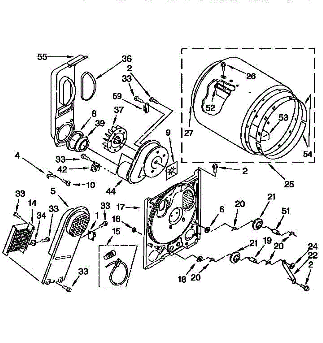 The heater box houses your dryer's heating element and screen. Replace this component when rusted, corroded, or the screen is damaged causing snags or stains.