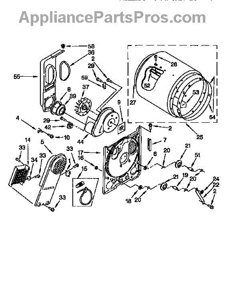 The heater box houses your dryer's heating element and screen. Replace this component when rusted, corroded, or the screen is damaged causing snags or stains.