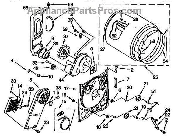 The heater box houses your dryer's heating element and screen. Replace this component when rusted, corroded, or the screen is damaged causing snags or stains.