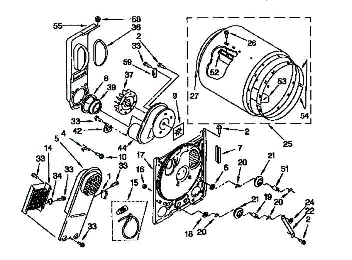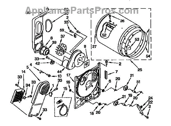 The heater box houses your dryer's heating element and screen. Replace this component when rusted, corroded, or the screen is damaged causing snags or stains.