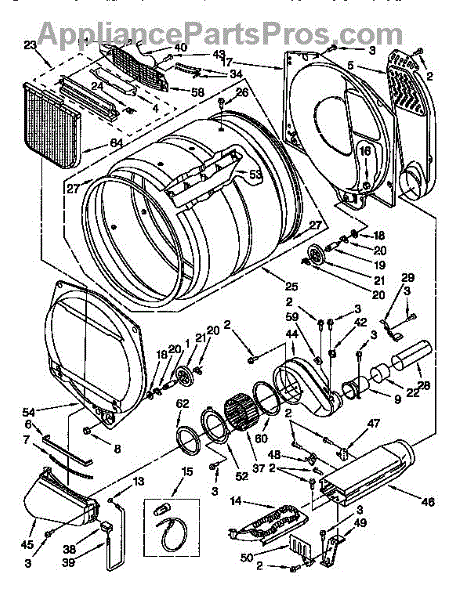 Blower housing assembly that directs airflow from the drum to the exhaust vent. Replace if cracked, damaged, or causing excessive noise in your dryer.