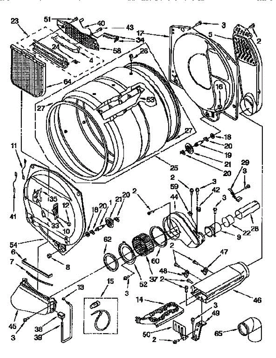Replacement dryer drum front bulkhead panel. Installs at the front of the drum assembly. Needed when cracked, warped, or damaged from wear.