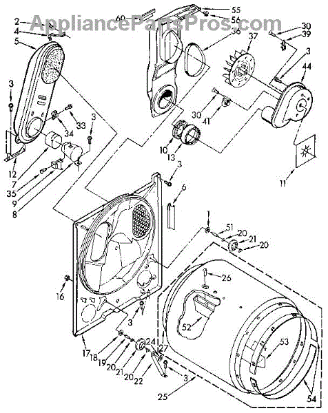Replaces a cracked, dented, or damaged dryer drum bulkhead. This front drum component restores smooth tumbling action when the original is worn or broken.