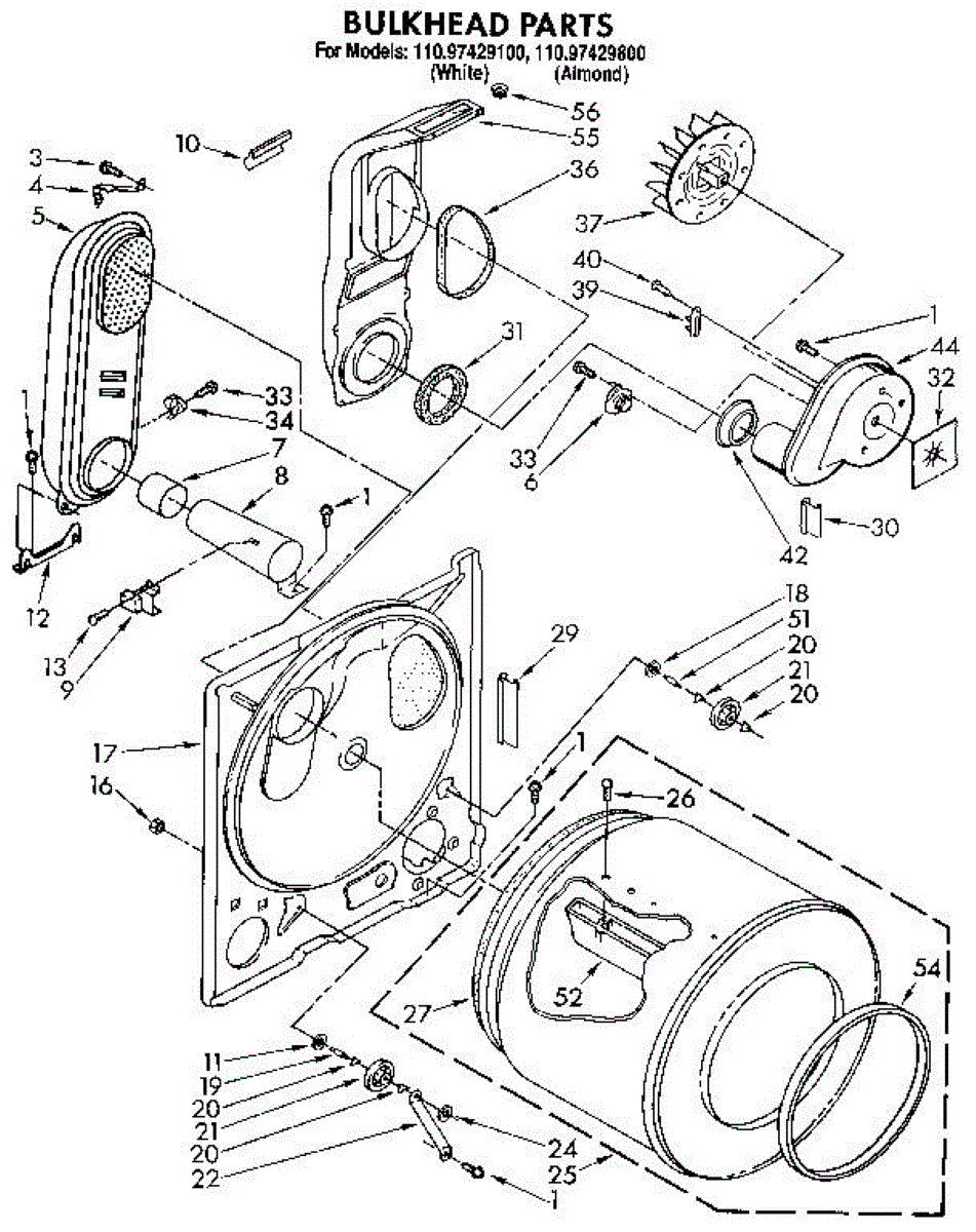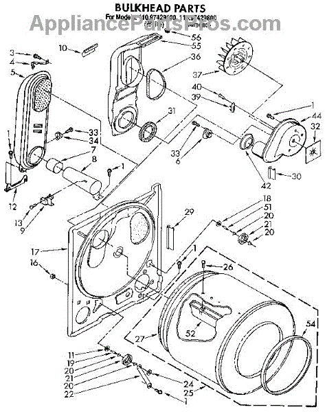 Replacement drum front bulkhead for dryers. Installs at the front of the drum assembly. Needed when original is cracked, damaged, or worn out.