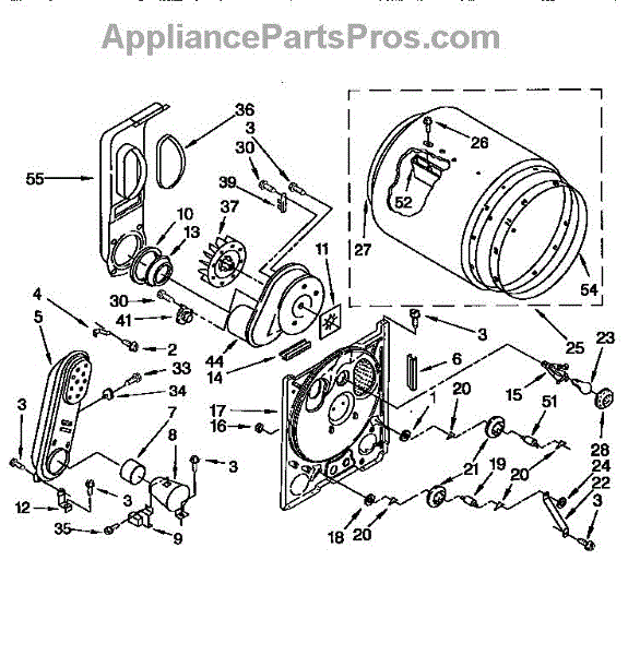 Complete drum assembly for dryers. Houses and rotates laundry during cycles. Replace if cracked, warped, damaged, or worn from extended use.