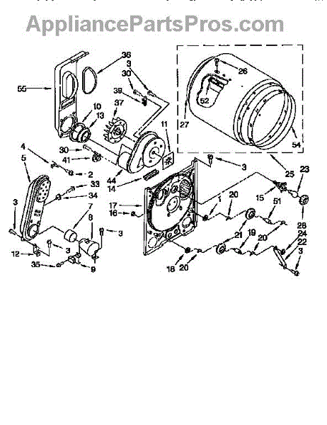 Complete drum assembly for dryers. Houses and rotates laundry during cycles. Replace if cracked, warped, damaged, or worn from extended use.