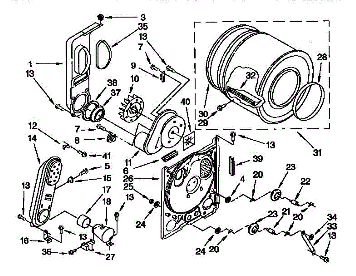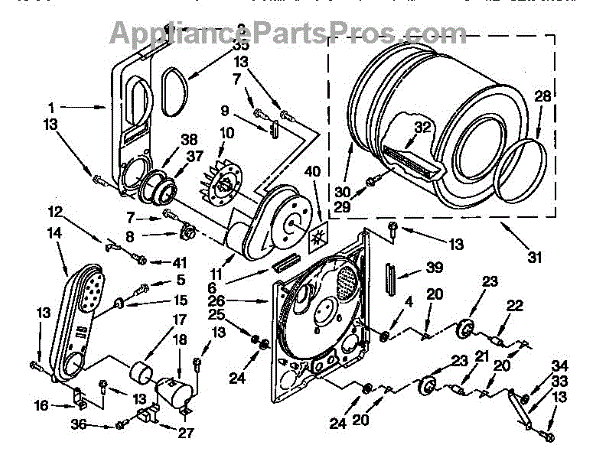 Seals the rear drum opening to prevent air leaks and reduce noise. Replace if worn, frayed, or causing rattling sounds. Confirm fit with your model number.