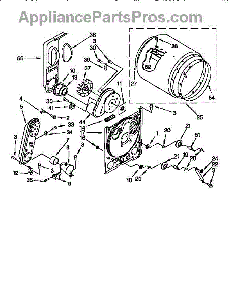 Complete drum assembly for dryers. Houses and rotates laundry during cycles. Replace if cracked, warped, damaged, or worn from extended use.