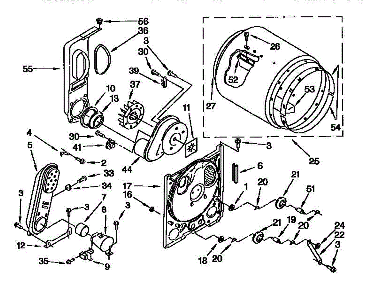 Rear drum support roller kit for dryers. Mounts behind the drum to maintain alignment and smooth rotation. Replace when rollers are worn or damaged.