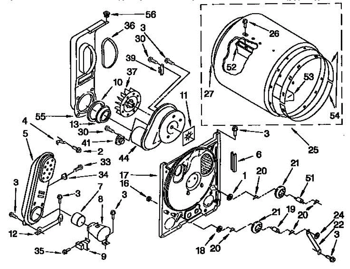 Rear drum support roller kit for dryers. Mounts behind the drum to maintain alignment and smooth rotation. Replace when rollers are worn or damaged.
