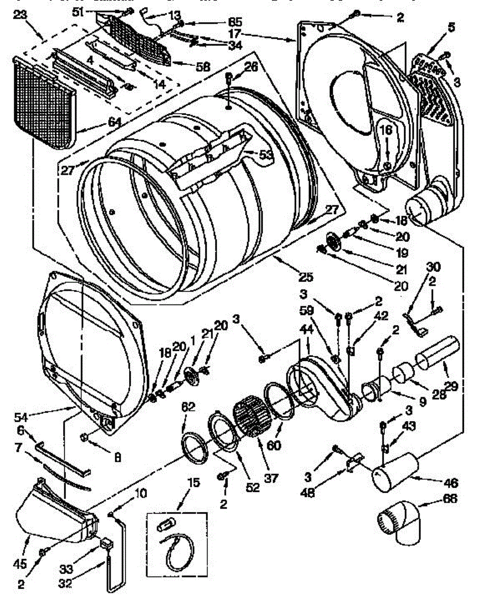 Replacement dryer drum front bulkhead panel. Installs at the front of the drum assembly. Needed when cracked, warped, or damaged from wear.