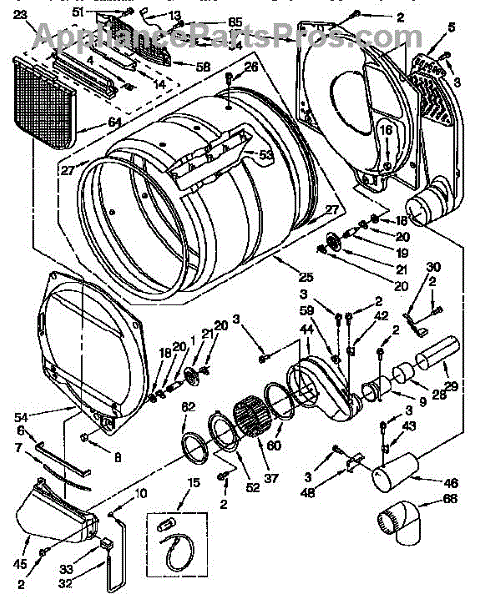 Blower housing assembly that directs airflow from the drum to the exhaust vent. Replace if cracked, damaged, or causing excessive noise in your dryer.