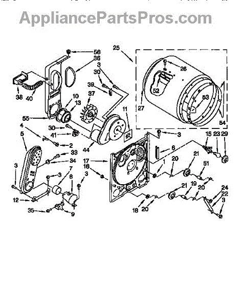 Seals the rear of the dryer drum to prevent hot air loss and ensure even drying. Replace when worn, cracked, or causing noise. Verify fit by model.