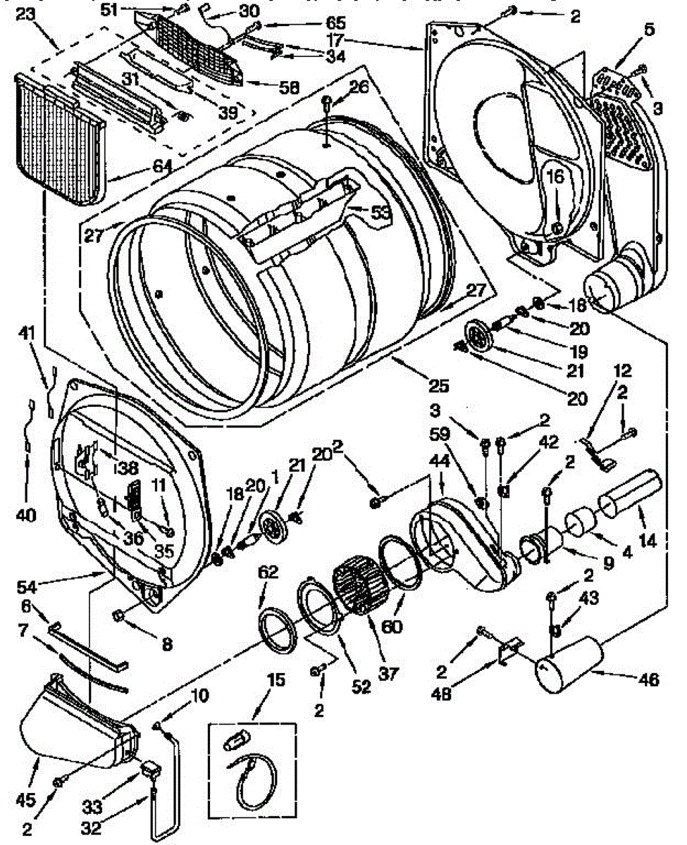 Seals the blower housing to prevent air leaks that reduce drying efficiency. Replace if worn, cracked, or missing to restore optimal airflow.