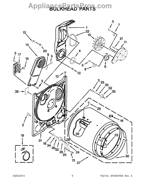 This bulkhead is the front tub housing that supports the washer drum and seals the washer cabinet to help contain water. Replaces a cracked or corroded housing to restore proper drum alignment and help prevent leaks. What it does: