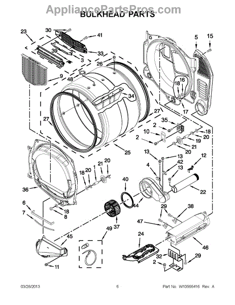 This blower housing directs dryer airflow from the drum to the exhaust for proper ventilation and consistent drying performance. It replaces a cracked or damaged housing to restore airflow and reduce noise. What it does: