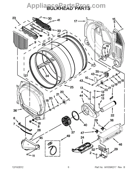 This blower housing directs dryer airflow from the drum to the exhaust for proper ventilation and consistent drying performance. It replaces a cracked or damaged housing to restore airflow and reduce noise. What it does: