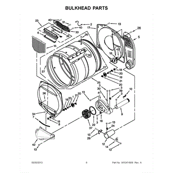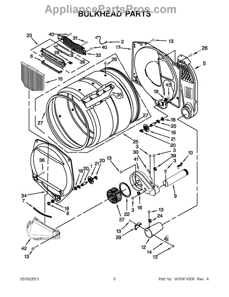 This bulkhead is the front interior panel that supports the drum and helps direct dryer airflow for efficient tumbling and exhaust. It restores proper drum alignment and airflow when the original panel is worn or damaged. What it does: