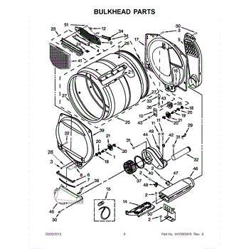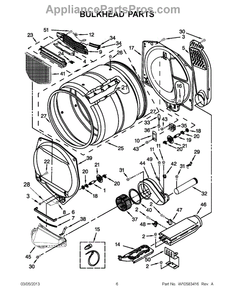 This front drum bulkhead is the stationary front panel that supports the dryer drum and seals the drum opening to maintain proper airflow and drum alignment for reliable drying performance. What it does: