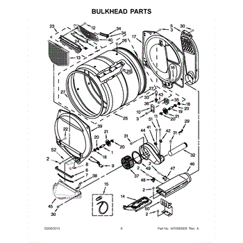 This front drum bulkhead is the stationary front panel that supports the dryer drum and seals the drum opening to maintain proper airflow and drum alignment for reliable drying performance. What it does: