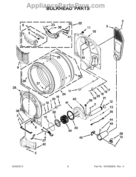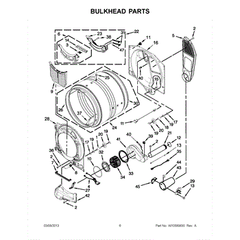 This bulkhead is the front interior panel that supports the drum and helps direct dryer airflow for efficient tumbling and exhaust. It restores proper drum alignment and airflow when the original panel is worn or damaged. What it does:
