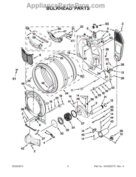 This blower housing assembly replaces the blower chamber that supports the blower wheel and routes air through the dryer for proper tumbling and drying. Restores correct airflow and helps reduce overheating or poor drying performance. What it does: