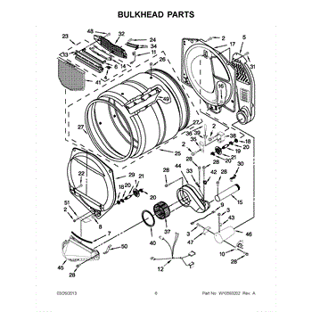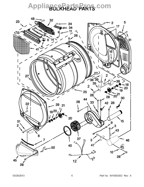 This front drum bulkhead is the stationary front panel that supports the dryer drum and seals the drum opening to maintain proper airflow and drum alignment for reliable drying performance. What it does: