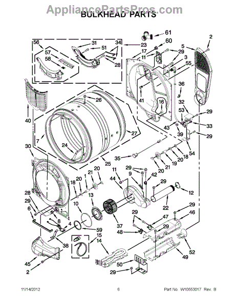 This blower housing assembly replaces the blower chamber that supports the blower wheel and routes air through the dryer for proper tumbling and drying. Restores correct airflow and helps reduce overheating or poor drying performance. What it does:
