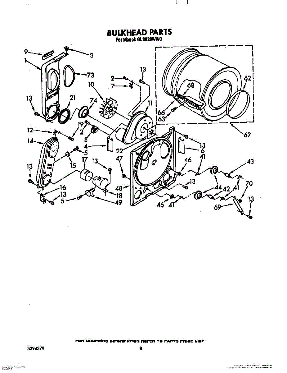 Replacement drum front bulkhead for dryers. Installs at the front of the drum assembly. Needed when original is cracked, damaged, or worn out.