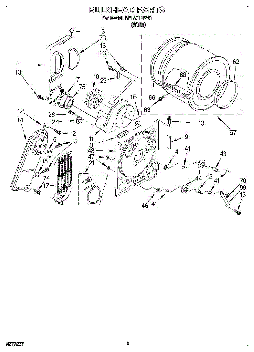 Replacement drum front bulkhead for dryers. Installs at the front of the drum assembly. Needed when original is cracked, damaged, or worn out.