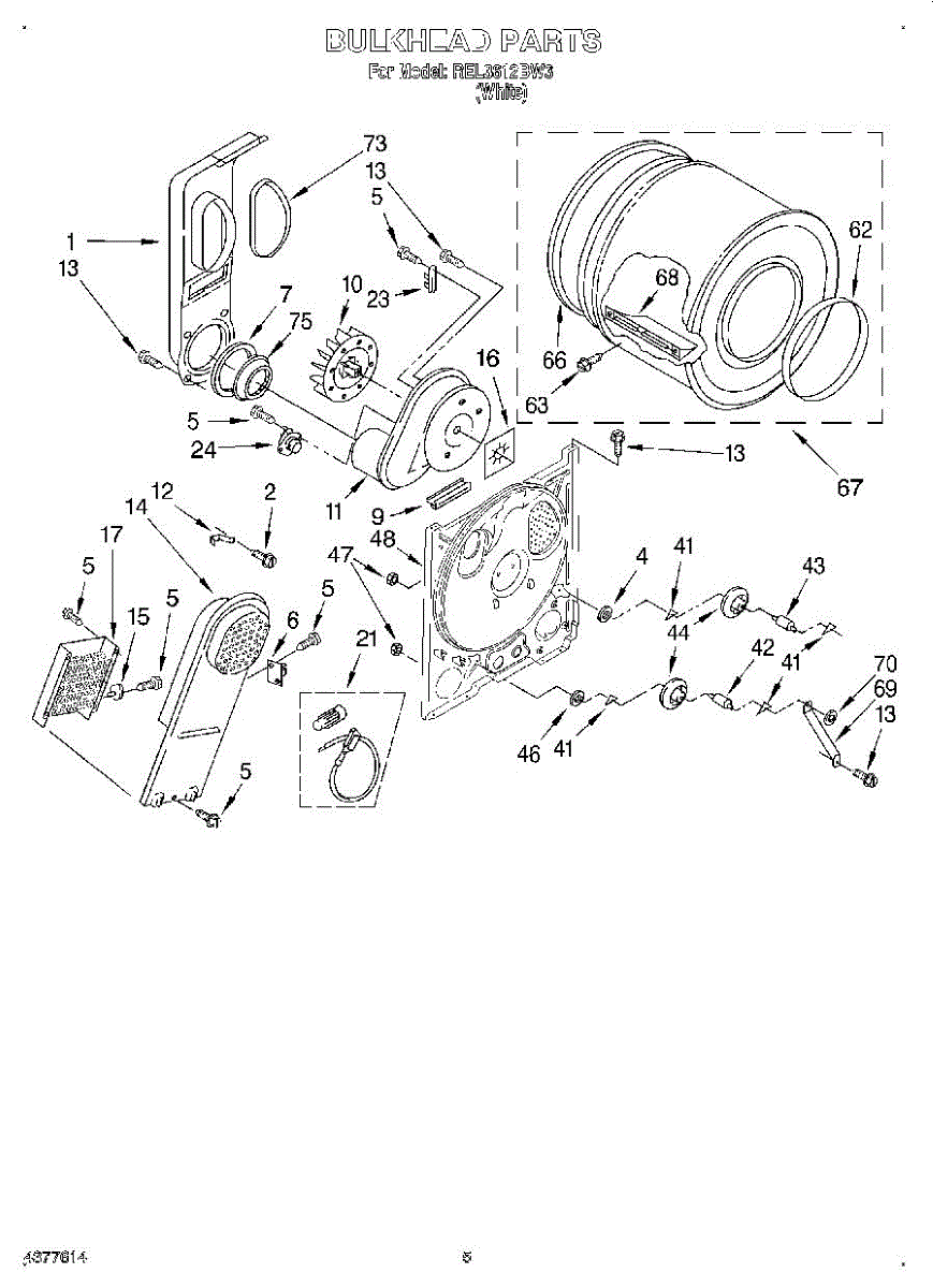 Replacement drum front bulkhead for dryers. Installs at the front of the drum assembly. Needed when original is cracked, damaged, or worn out.