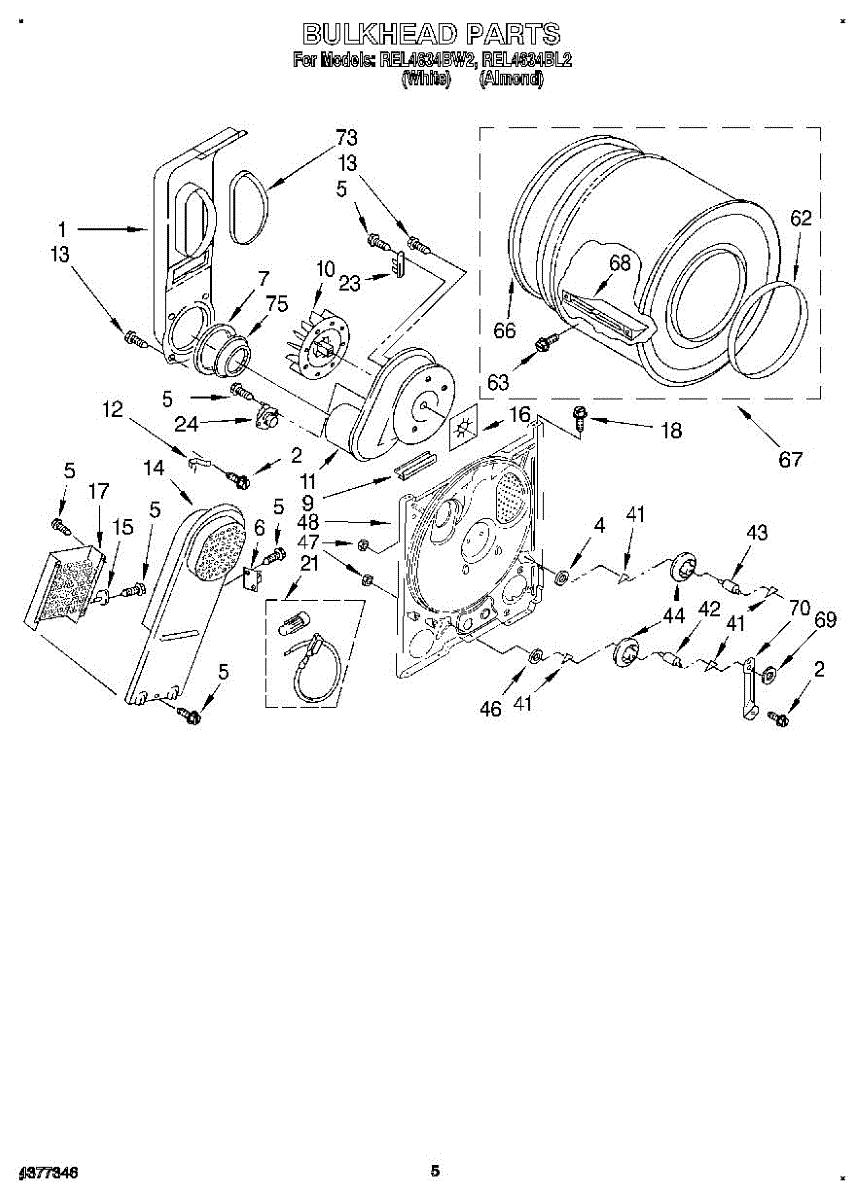Replacement drum front bulkhead for dryers. Installs at the front of the drum assembly. Needed when original is cracked, damaged, or worn out.