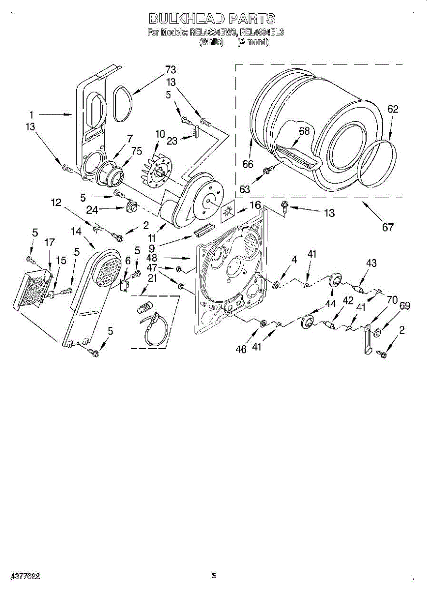 Replacement drum front bulkhead for dryers. Installs at the front of the drum assembly. Needed when original is cracked, damaged, or worn out.