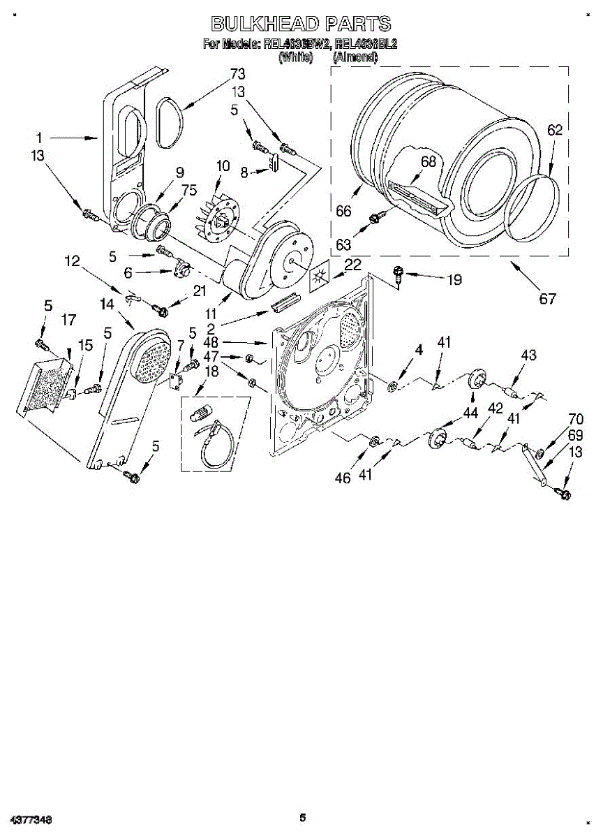 Complete drum assembly for dryers. Houses and rotates laundry during cycles. Replace if cracked, warped, damaged, or worn from extended use.