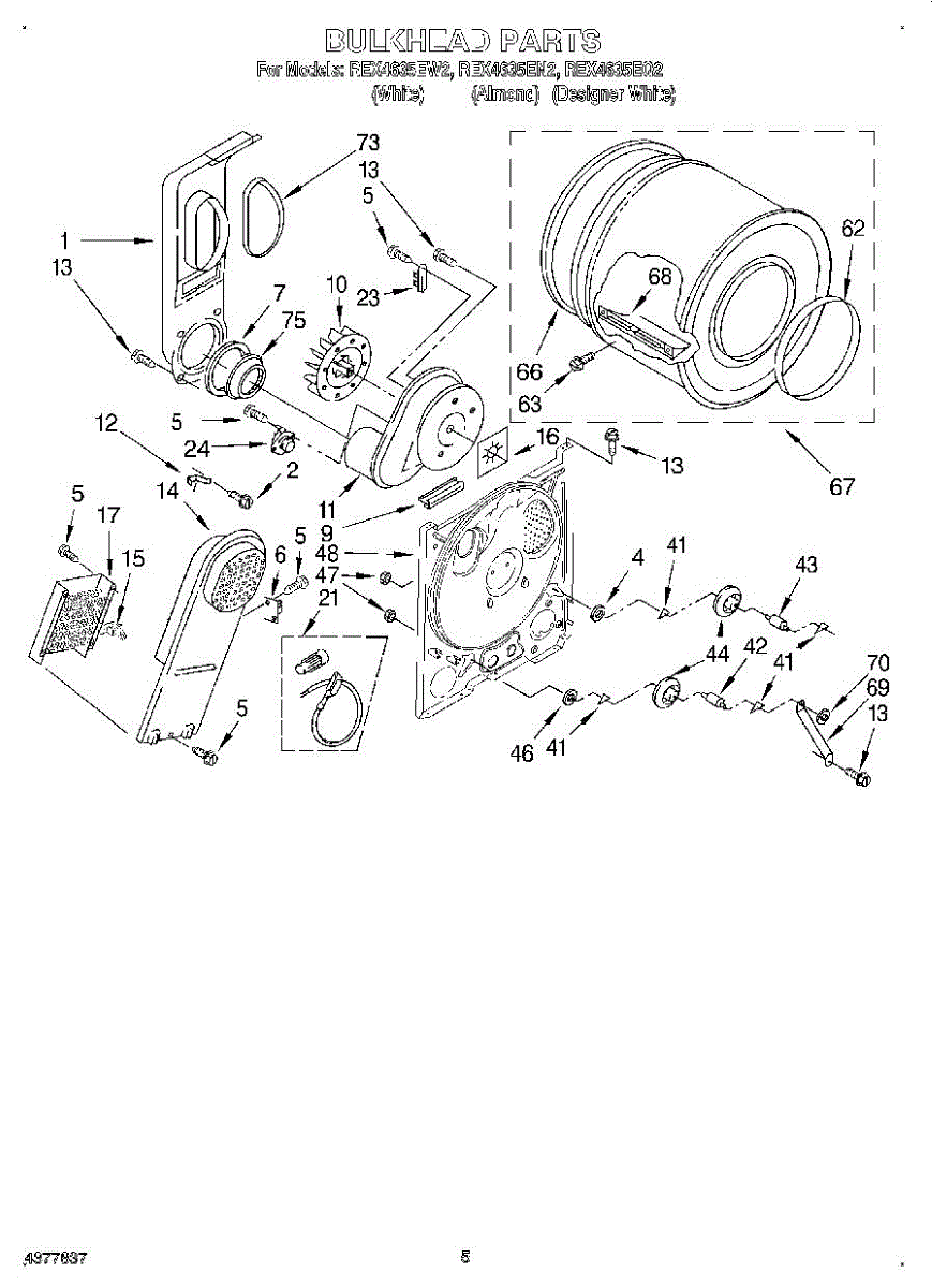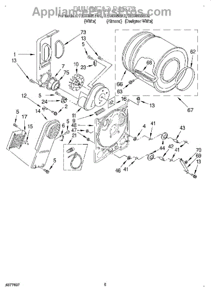 Complete drum assembly for dryers. Houses and rotates laundry during cycles. Replace if cracked, warped, damaged, or worn from extended use.